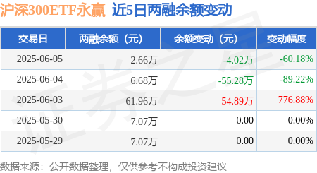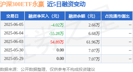 本站消息,6月5日,沪深300ETF永赢(563520)融资买入1.7万元,融资偿还5.72万元,融资净卖出4.02万元,融资余额2.66万元。
